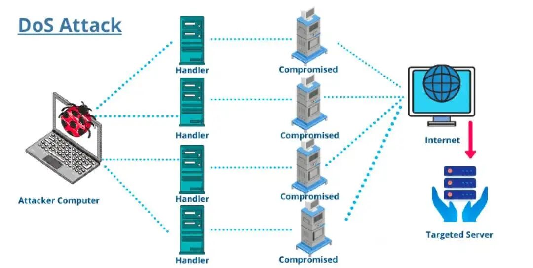 Denial-of-Service (DoS) attacks are one of the most primitive forms of cyberattacks. Attackers use a single computer or a limited number of devices to send a massive number of invalid requests to a target server, or exploit system vulnerabilities to consume its core resources such as bandwidth, memory, and CPU. It's like someone continuously dialing a company's front desk, preventing legitimate customers from getting through—the target system, exhausted of resources, cannot respond to legitimate users' requests, ultimately resulting in a service outage. This type of attack is characterized by its single source, relatively limited scale and destructive power, and relatively low difficulty to defend against.