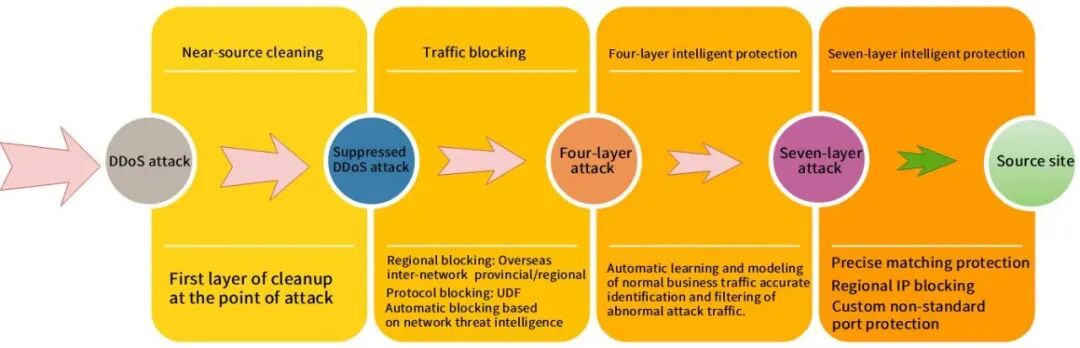 Anycast network technology:By using the Anycast routing protocol, multiple server nodes can share the same IP address. Attack traffic will be automatically routed to the nearest node, thus achieving traffic sharing and reducing the load on a single node.